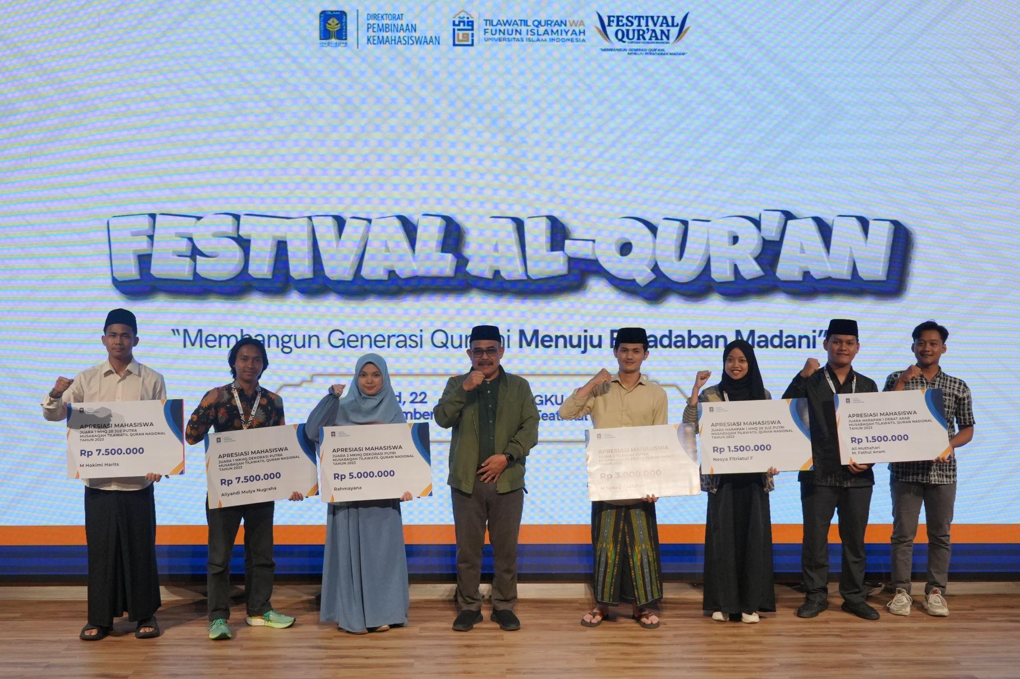 Pada Festival Qur`an UII 2024 juga menghadirkan para mahasiswa berprestasi pada MTQMN XVII di Universitas Brawijaya 2023 yang telah berhasil mengukir sejarah menjadi Juara Umum 3 Nasional dan Juara Umum 1 Perguruan Tinggi Swasta. Dengan tujuan untuk diberikan apresiasi serta sebagai ajang motivasi bagi seluruh calon delegasi untuk dapat berjuang kembali dan meningkatkan prestasi pada MTQMN XVIII 2025 mendatang.