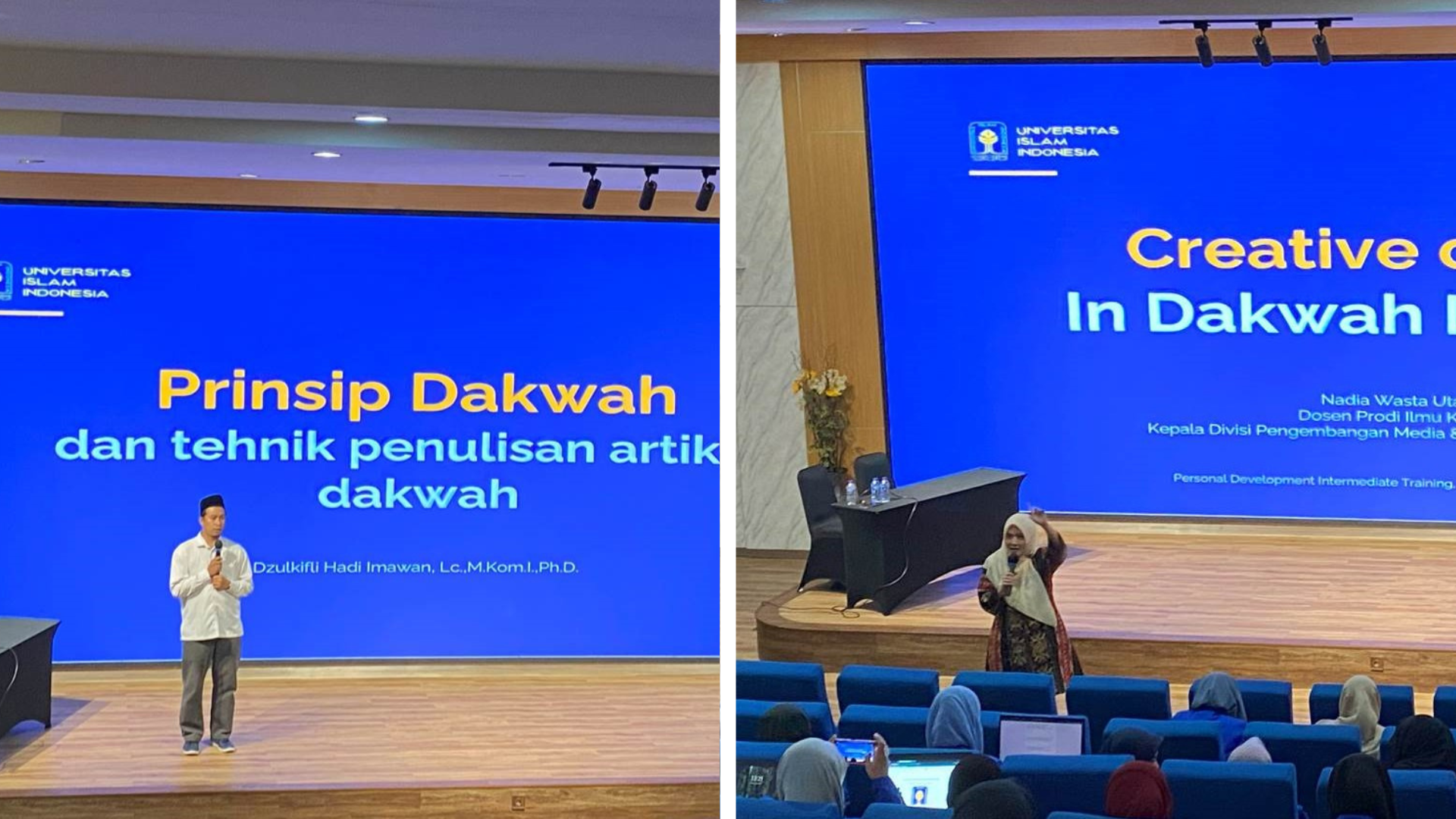 Hari kedua dibuka dengan materi berjudul “Prinsip Dakwah dan Teknik Penulisan Artikel Dakwah” yang disampaikan oleh Bapak Dzulkifli Hadi Imawan, Lc., M.Kom.I., Ph.D. Melalui sesi ini mahasiswa dapat memahami definisi, hukum, tujuan, dan prinsip-prinsip dakwah. Tak hanya mempelajari materi, mahasiswa juga diajak untuk mempraktikkan pelaksanaan dakwah, baik secara lisan berupa pembacaan ayat dan hadits maupun secara tulisan berupa artikel dakwah.