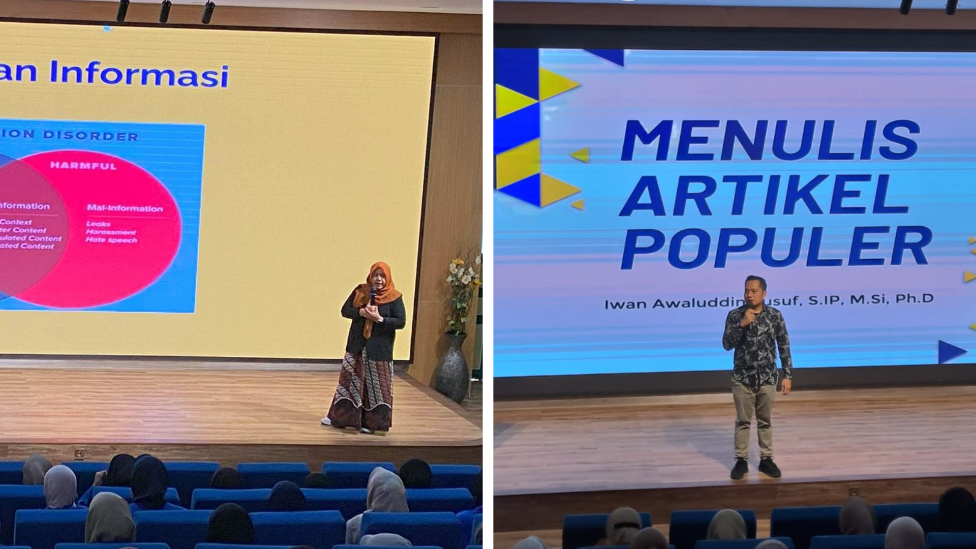 Sesi selanjutnya disambung oleh Bapak Iwan Awaluddin Yusuf, S.IP., M.Si., Ph.D. dengan materi “Menulis Artikel Ilmiah Populer”. Dalam sesi ini mahasiswa diberikan arahan dalam penulisan artikel ilmiah populer, seperti teknik dan tahapan penulisan, cara menentukan topik, mengembangkan ide, hingga mempraktikkan penyusunan outline artikel. Mahasiswa juga diberikan penugasan berupa menulis artikel dengan topik sesuai program studi masing-masing. Materi ini dapat membuka peluang dan potensi bagi mahasiswa, baik dalam menunjang proses studi maupun menambah portfolio publikasi karya tulis.
