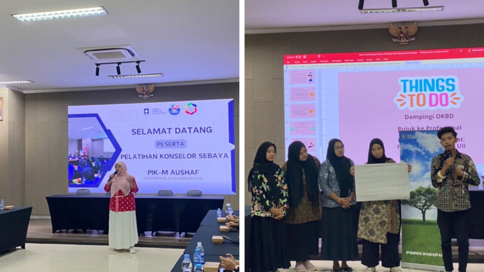 Pelatihan Konselor Sebaya PIK-M Aushaf dengan tema “Psychological and Suicide First Aid” telah dilaksanakan pada tanggal 23-24 Februari 2024 oleh Direktorat Pembinaan Kemahasiswaan (DPK) UII. Diselenggarakannya pelatihan konselor sebaya guna memberikan wawasan dan pengetahuan dalam mengembangkan keterampilan konselor dalam pemberian bantuan psikologis kepada klien. Kegiatan ini dilakukan selama 2 hari di Ruang Sidang Datar Lantai 2, Gedung Kuliah Umum Dr. Sardjito UII.