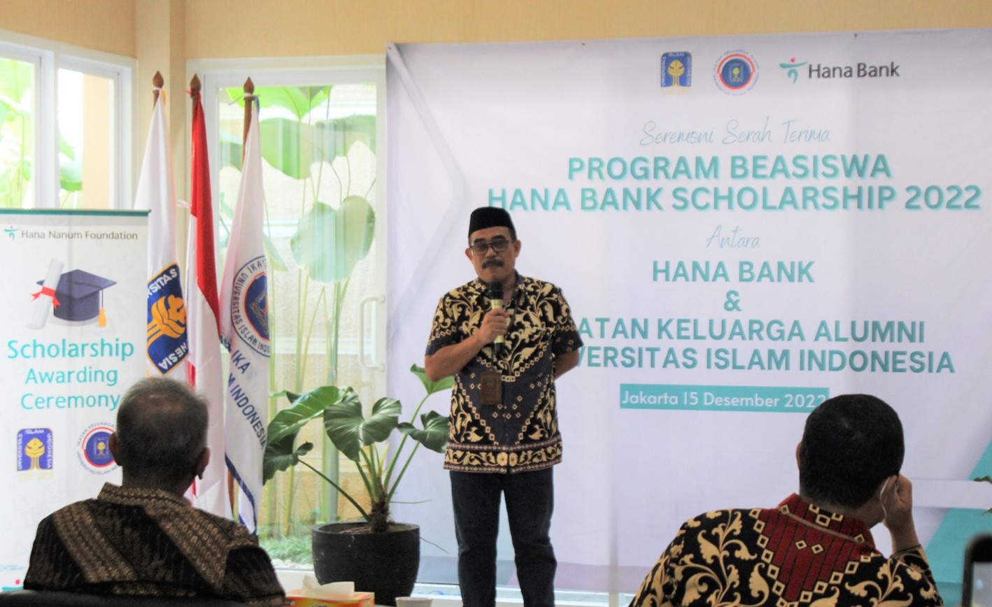 Jakarta, 15 Desember – Universitas Islam Indonesia melalui Direktorat Pembinaan Kemahasiswaan (DPK) UII dan Dewan Pimpinan Pusat Ikatan Keluarga Alumni (DPP IKA) UII menjalin sebuah kerja sama baru dengan KEB Hana Bank. Acara Seremoni Serah Terima Program Beasiswa Hana Bank Scholarship 2022 dilaksanakan pada Kamis, 15 Desember 2022 di Rumah Sekretariat DPP IKA UII, Jakarta Selatan.