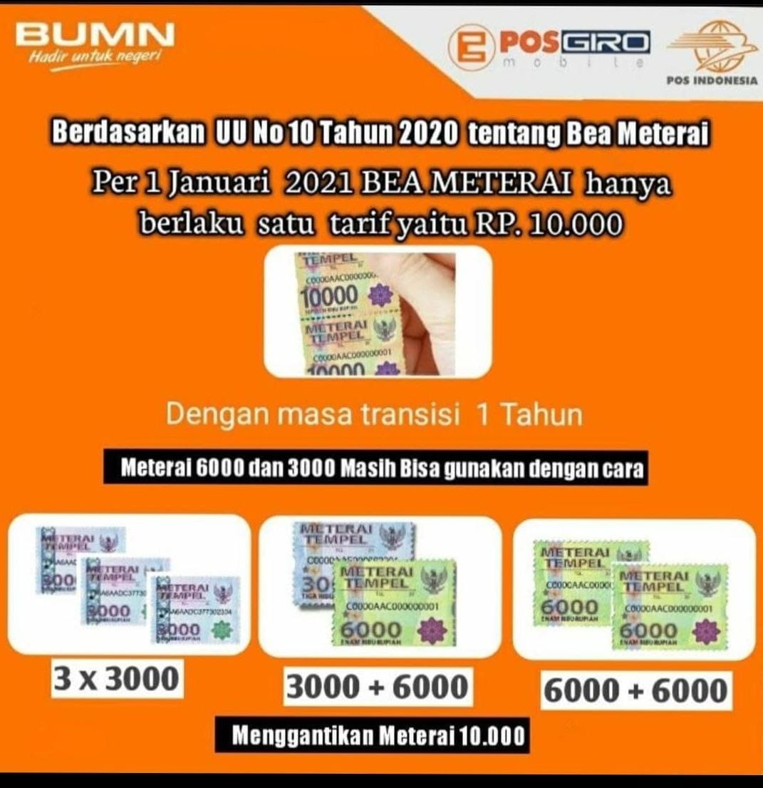 Contoh Penggunaan Materai Rp 10.000 adalah sebagai berikut :